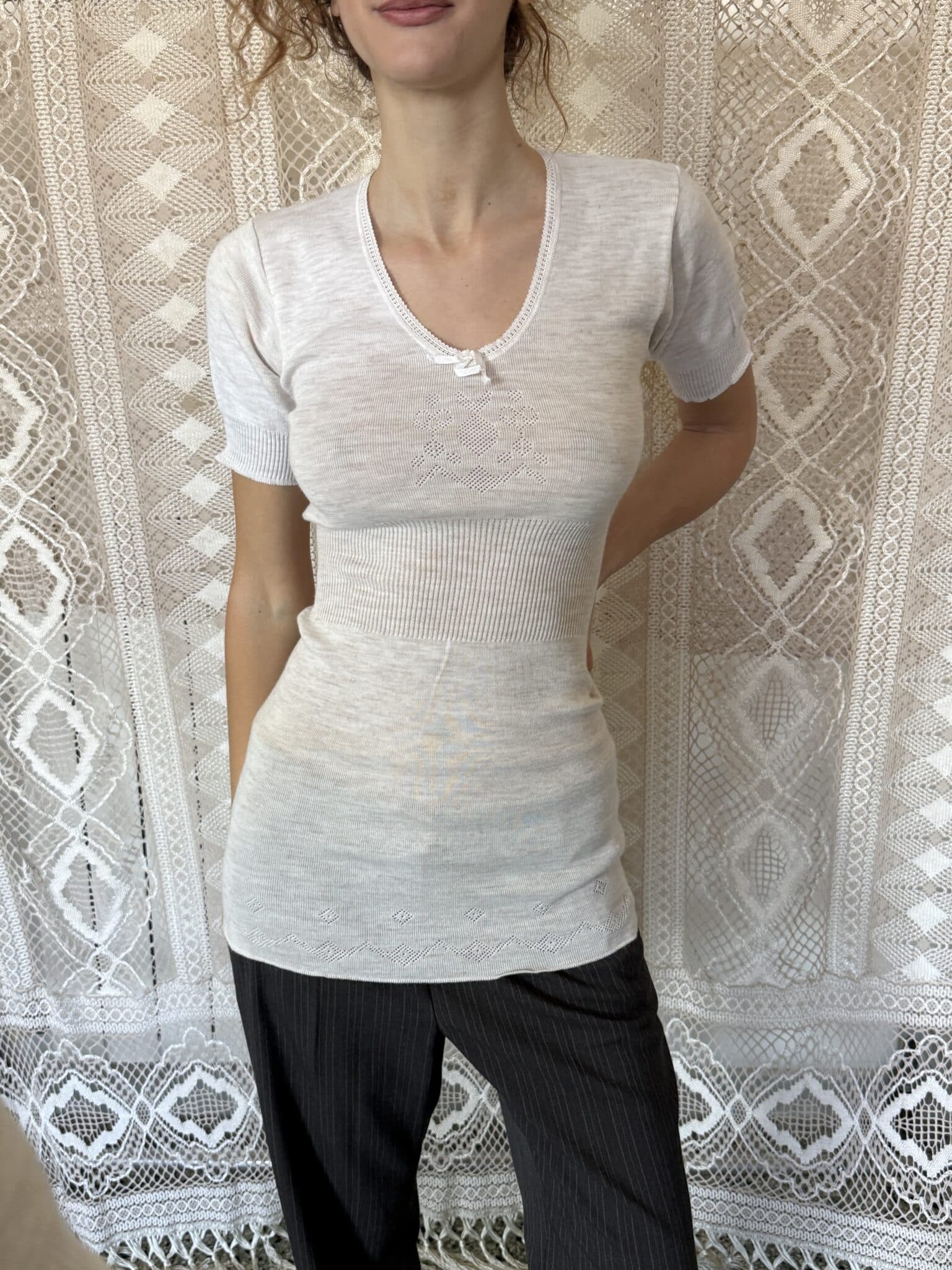 style 4 – ribbed t-shirt w. scalloped lace trim
