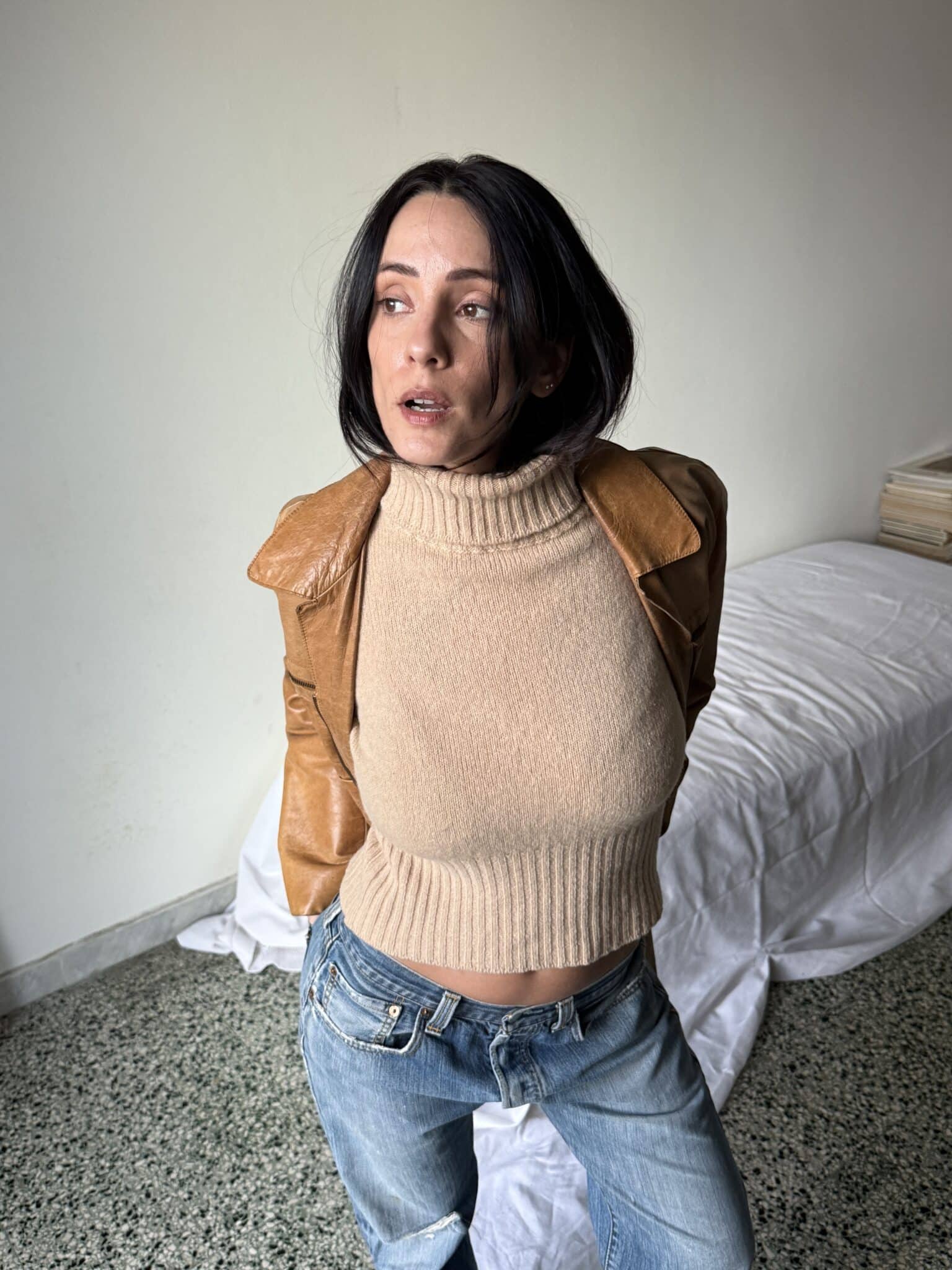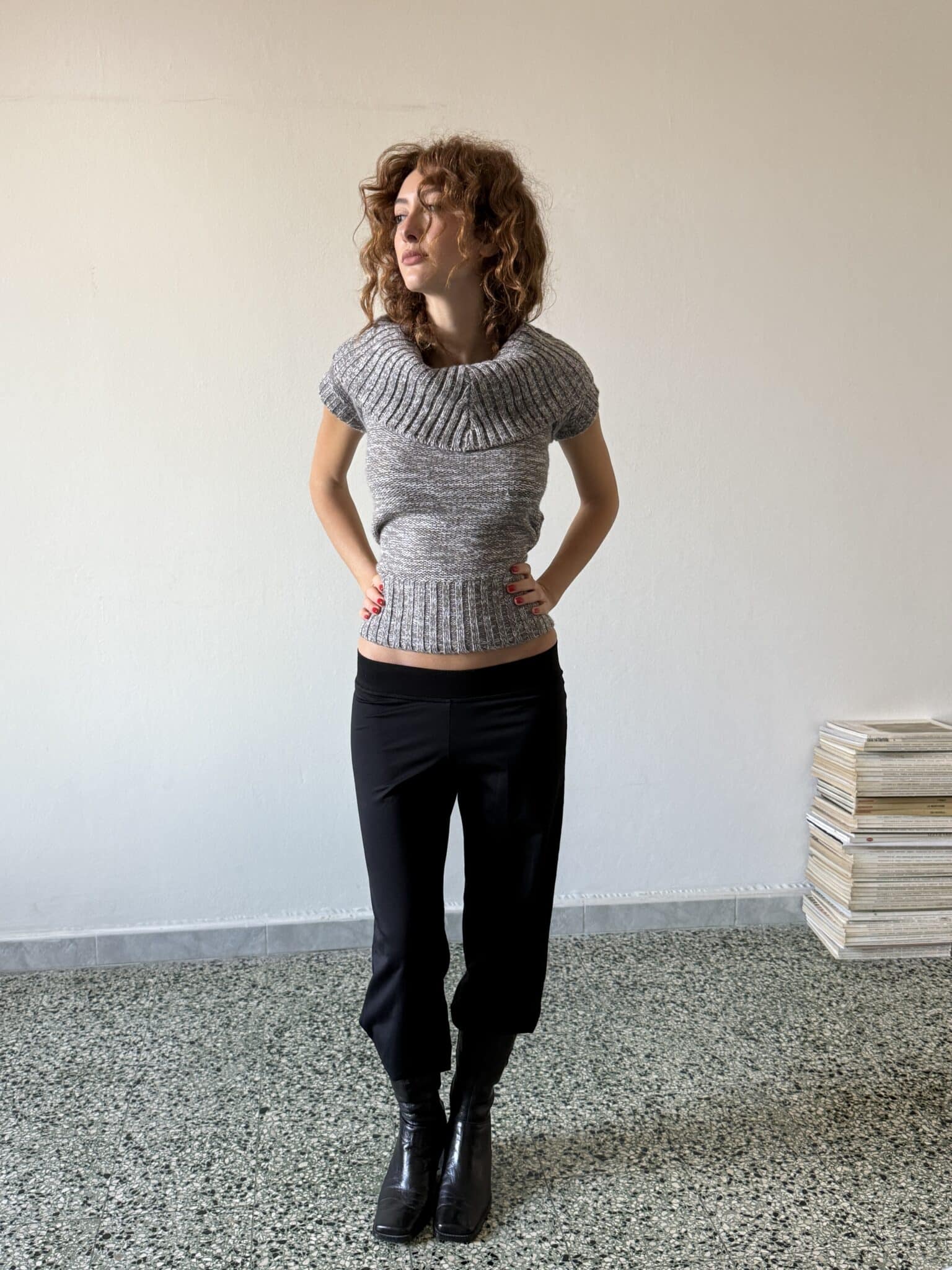 style 5 – asymmetric draped top in 100% wool
