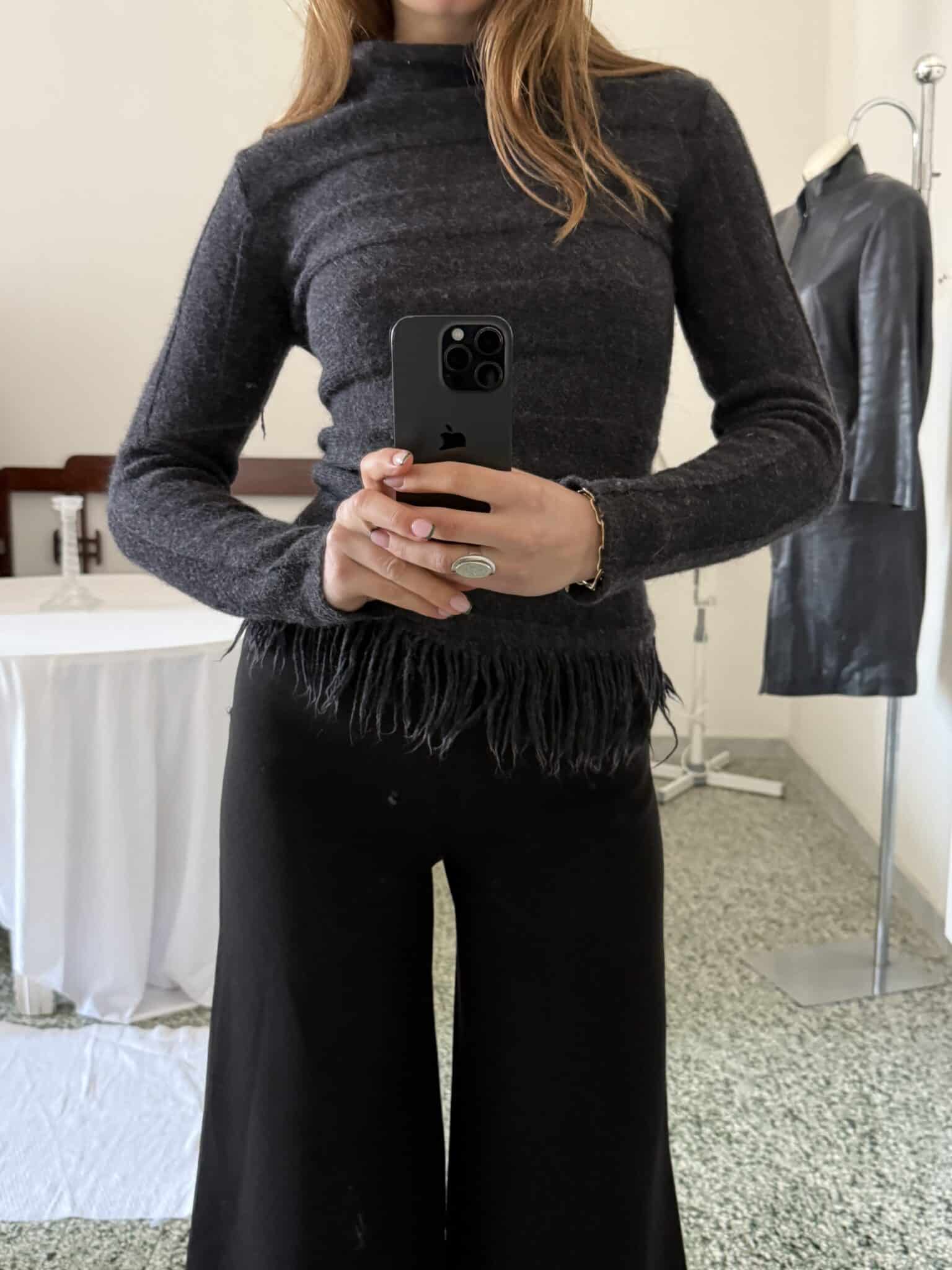 fringed knit top with long sleeves