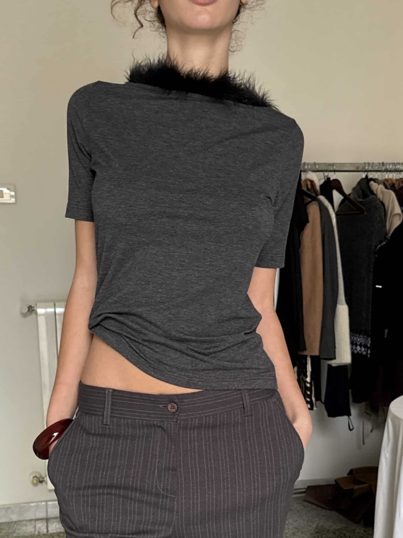 t-shirt with fur trim