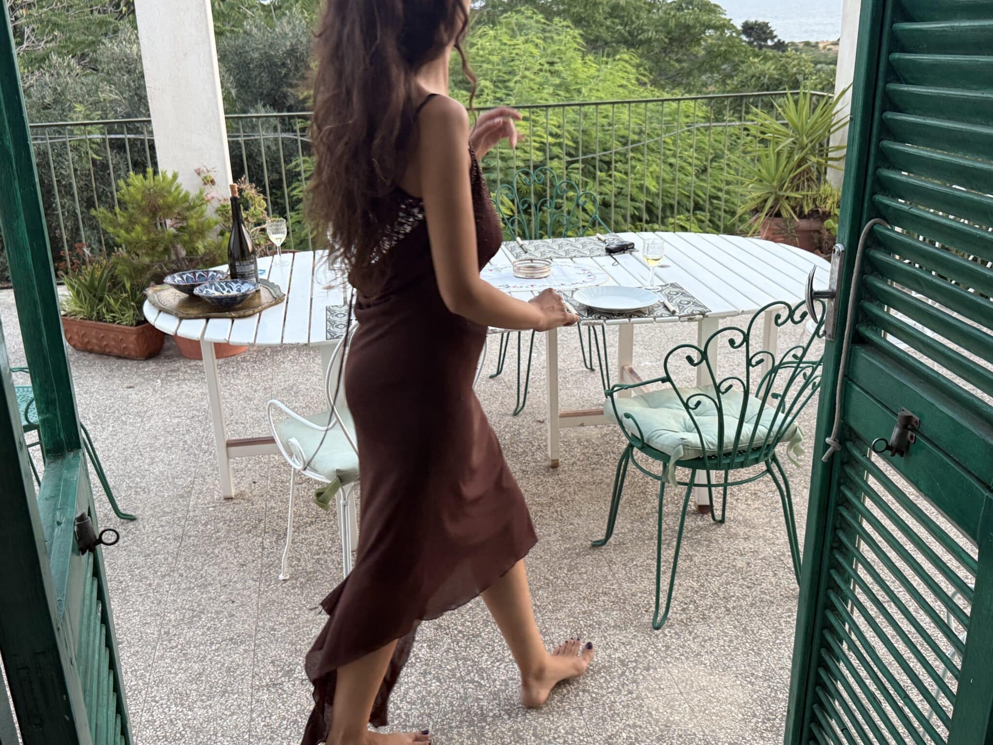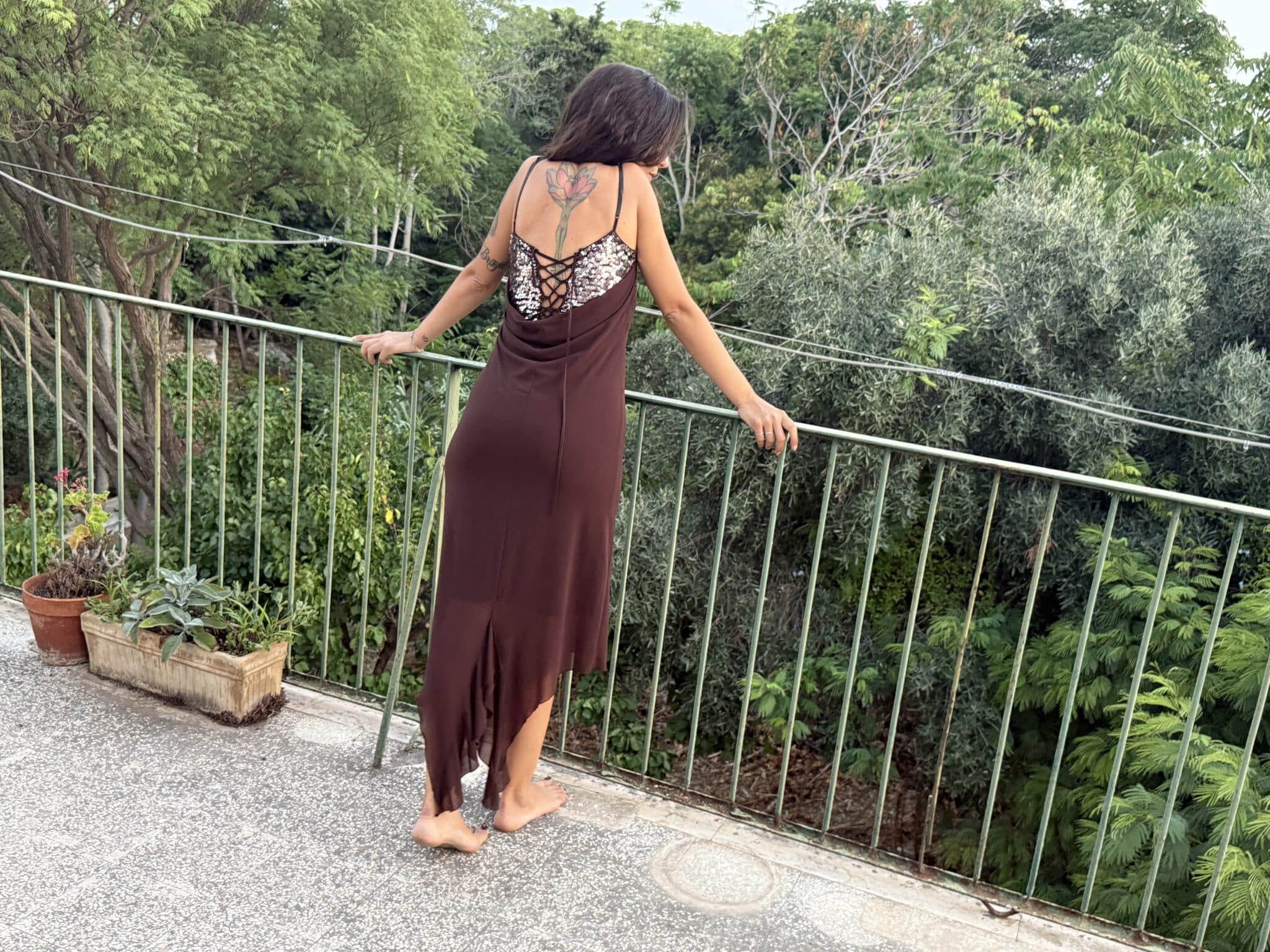 Roberta is 174 cm, size S-M.