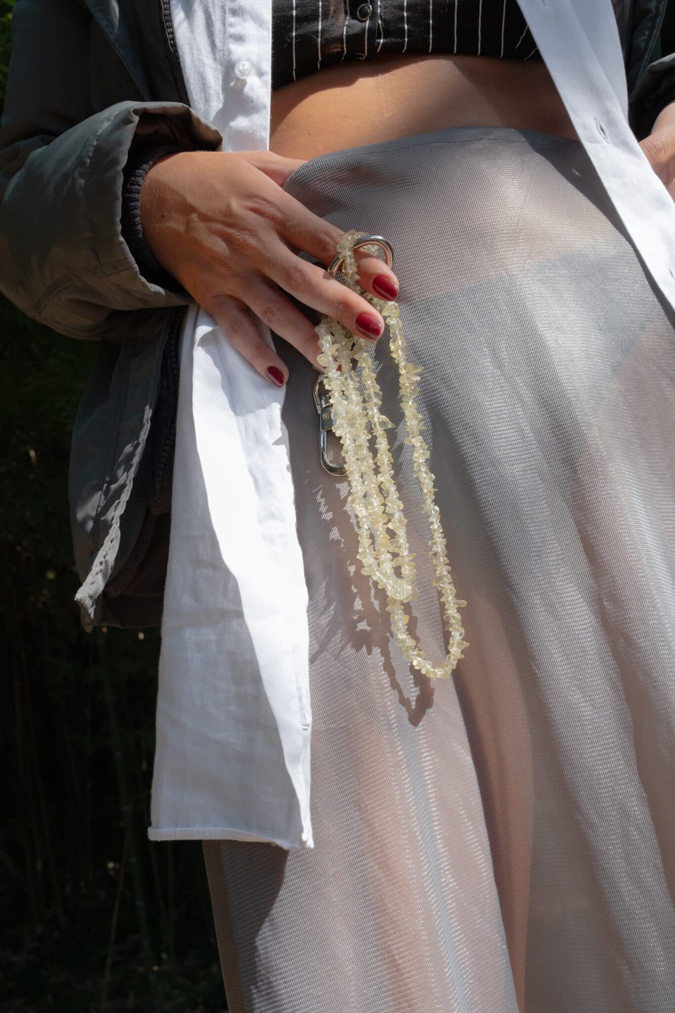 Cabal keychain / no 1 – handcrafted keychain made from irregular stone chips, finished with a polished silver clasp. One of a kind – exclusive at Pyoma