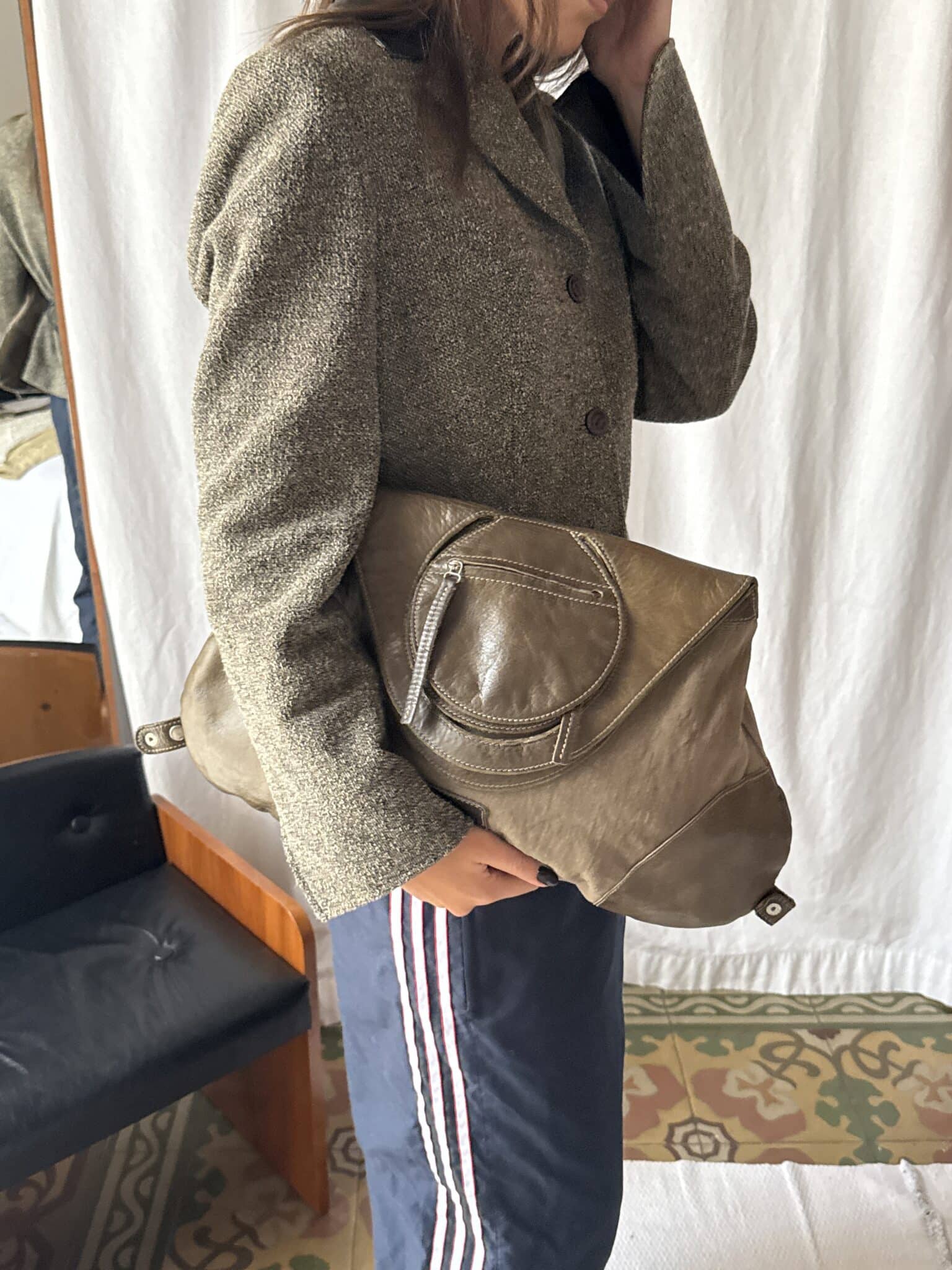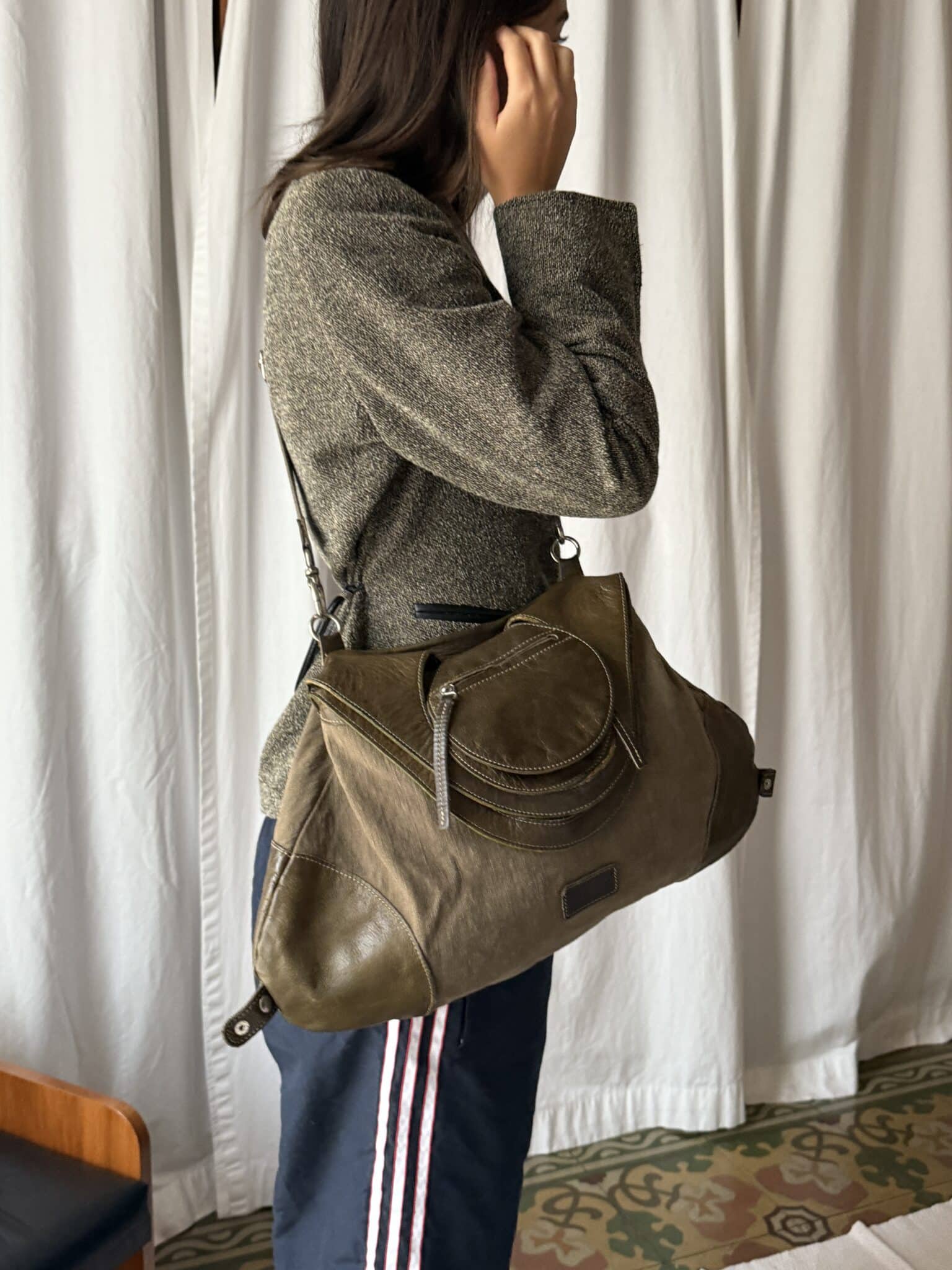 leather shoulder and crossbody bag – structured medium-sized bag crafted from smooth leather with refined silver hardware. designed with curved edges and top-zip closure for versatile wear across shoulder or crossbody.