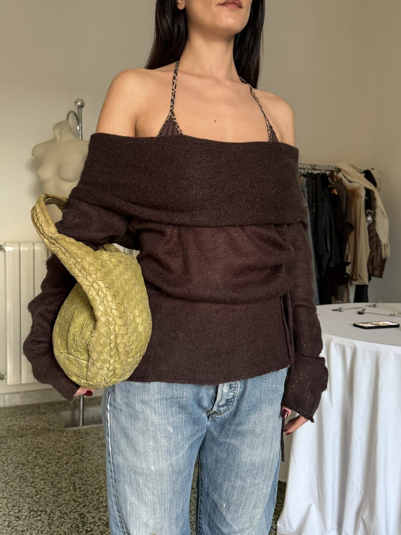 off-shoulder knit sweater