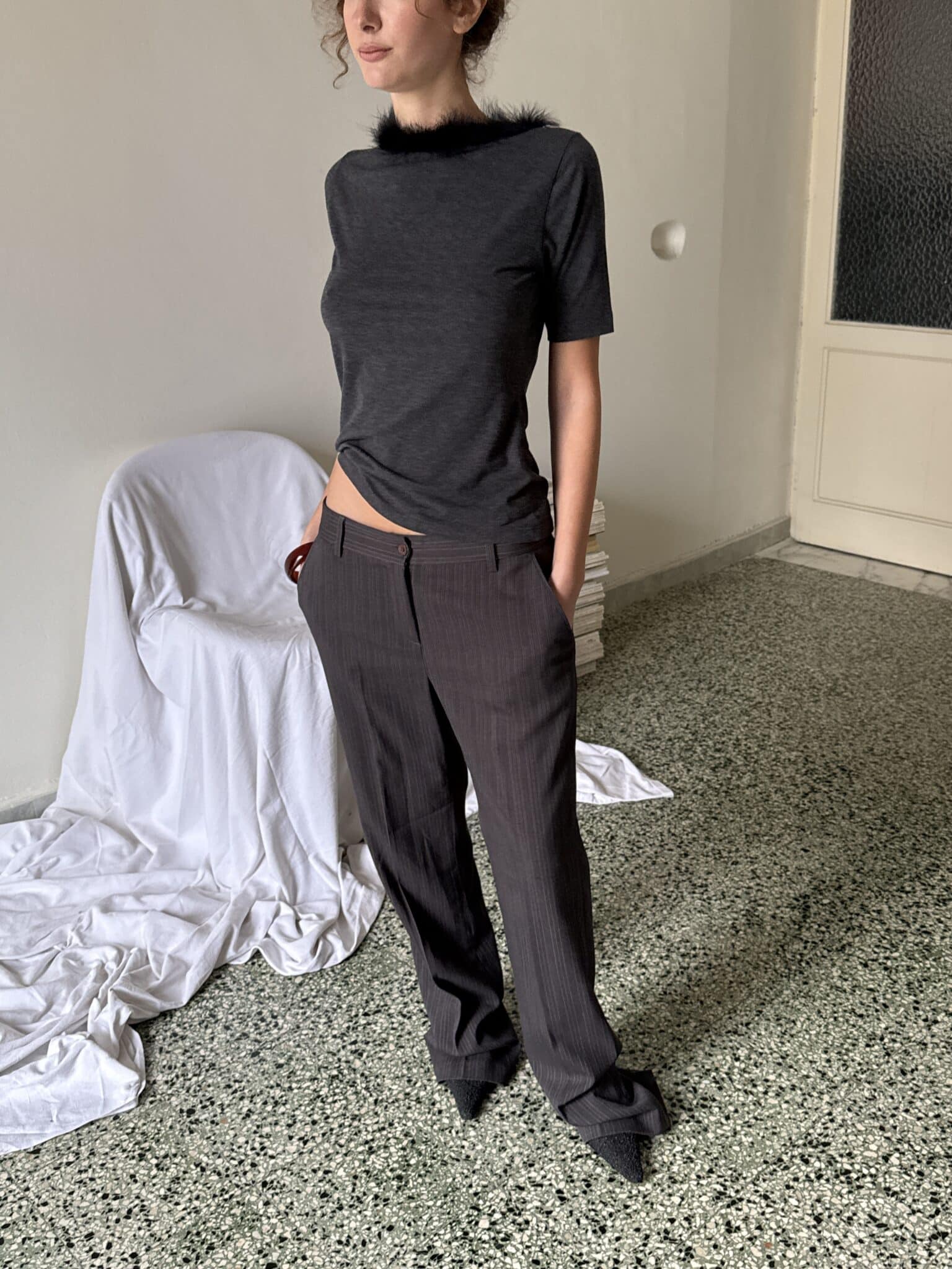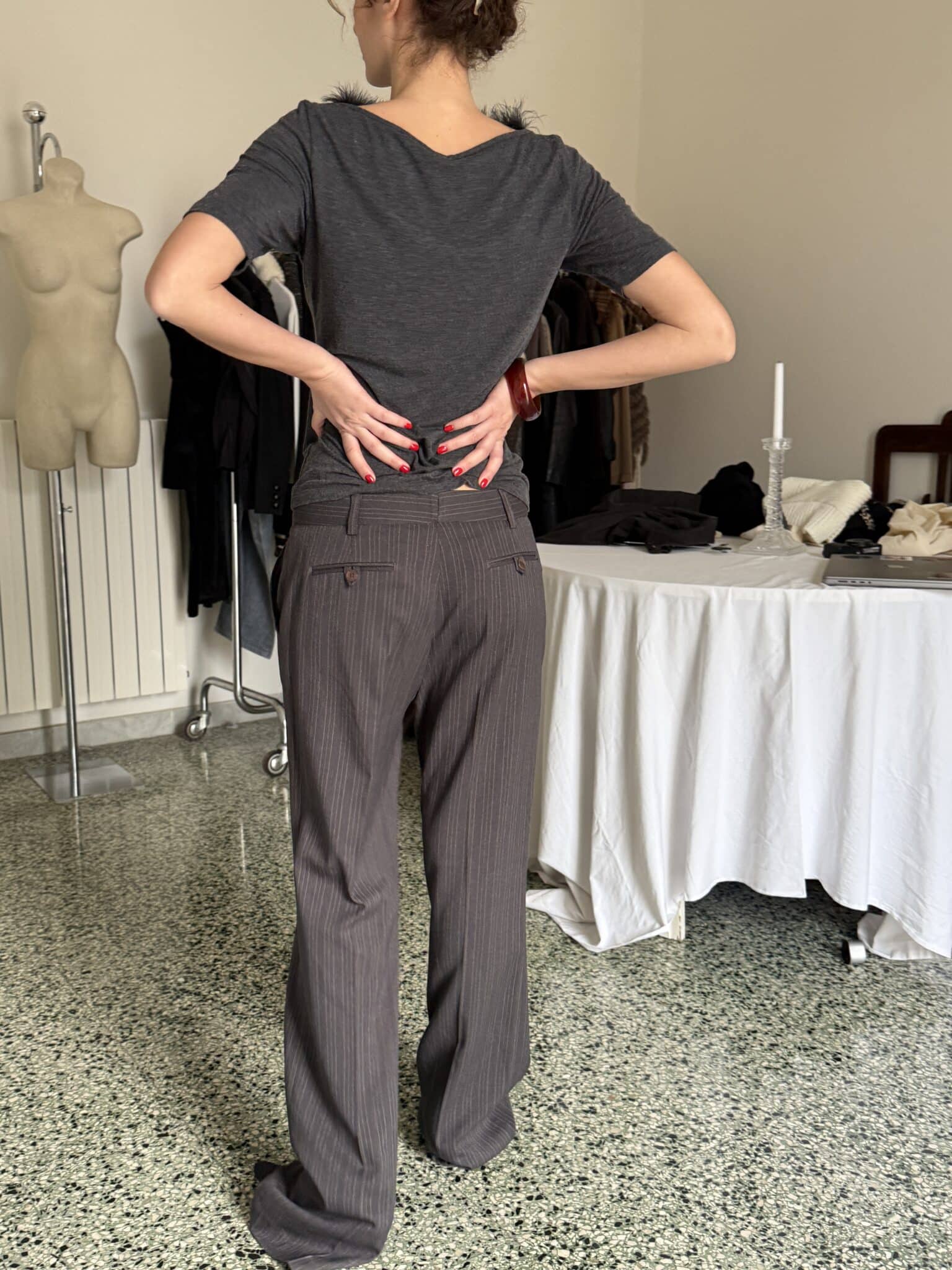Lucrezia is 1.73m and usually wearing size XS ( fits low waist )