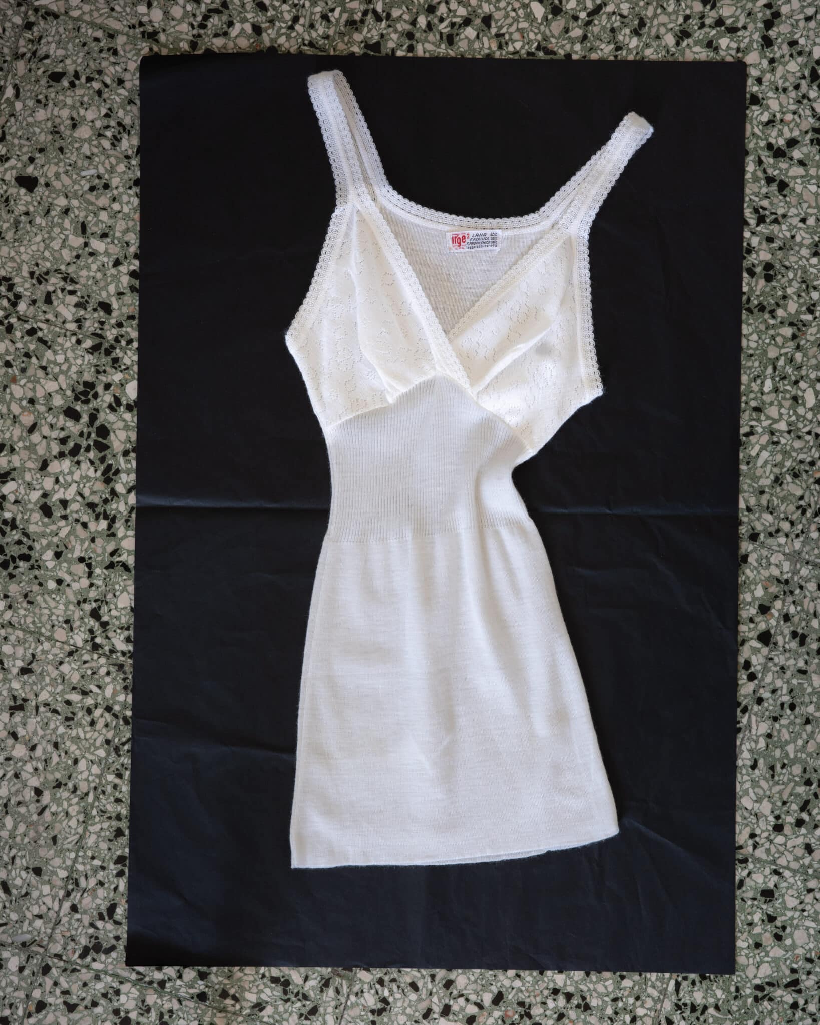 ribbed camisole with a defined ribbed waist that enhances and shapes the silhouette. Soft wrap-style cups, wide shoulder straps, and a scalloped lace edging along the neckline